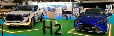 Toyota stands with strong presence for the second year in a row in Europe’s Hydrogen week Expo event in Brussels, showcasing the fuel cell modules, explaining their multiple uses, and displaying the Mirai and Hilux FCEV prototype.